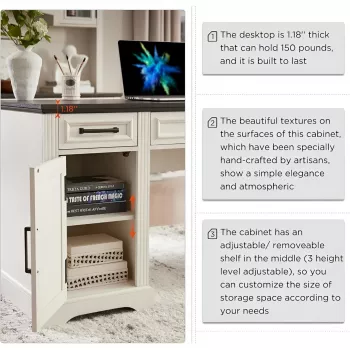 58" Farmhouse Executive Desk with Drawers and Cabinet for Home Office